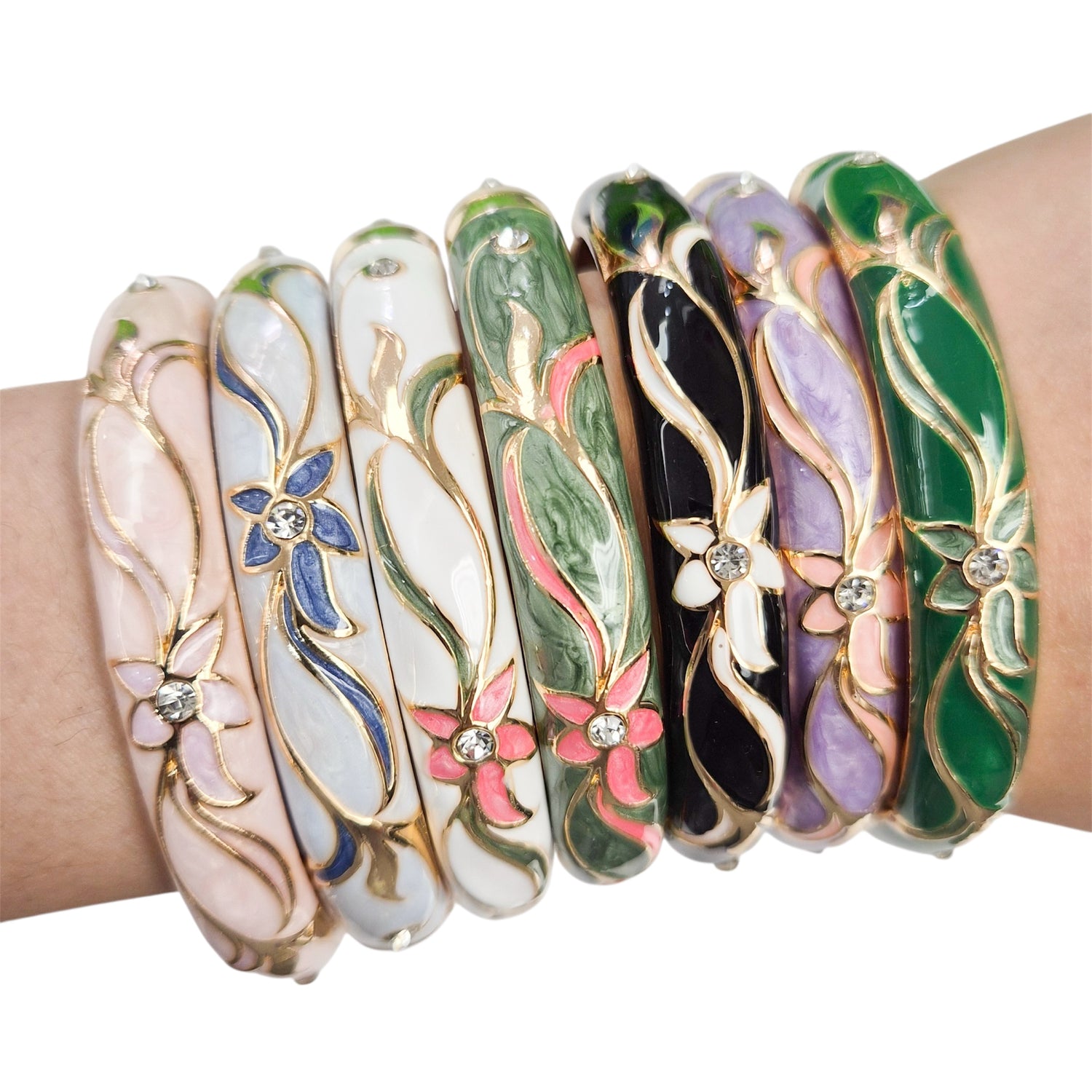 10 mm Floral Enamel Bangle with CZ stones