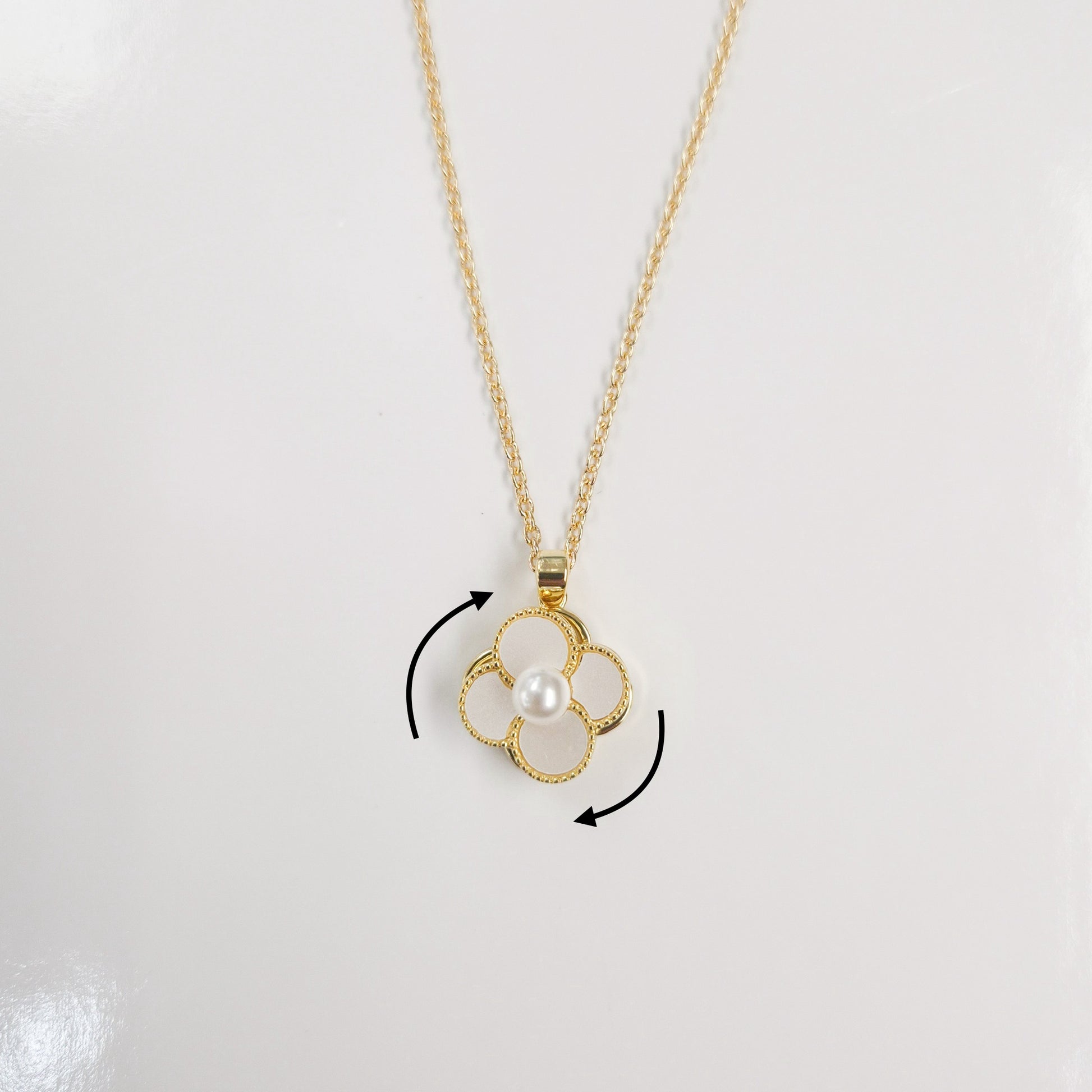 White Pearl Enamel Flower Spinner Necklace